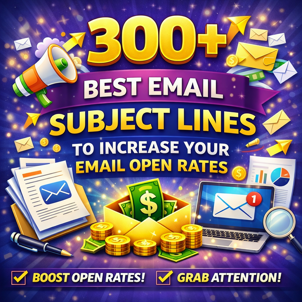 With our 300+ Best Email Subject Lines to Increase Your Email Open Rates, you get a curated, ready-to-use collection of high-performing subject lines designed to grab attention, spark curiosity, and drive more opens across B2B, B2C, eCommerce, SaaS, affiliate, and cold email campaigns.